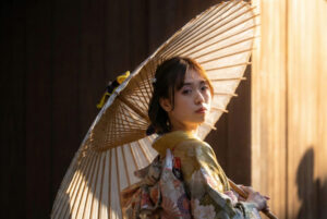 This is a daytime outdoor private photo shoot in Kyoto.